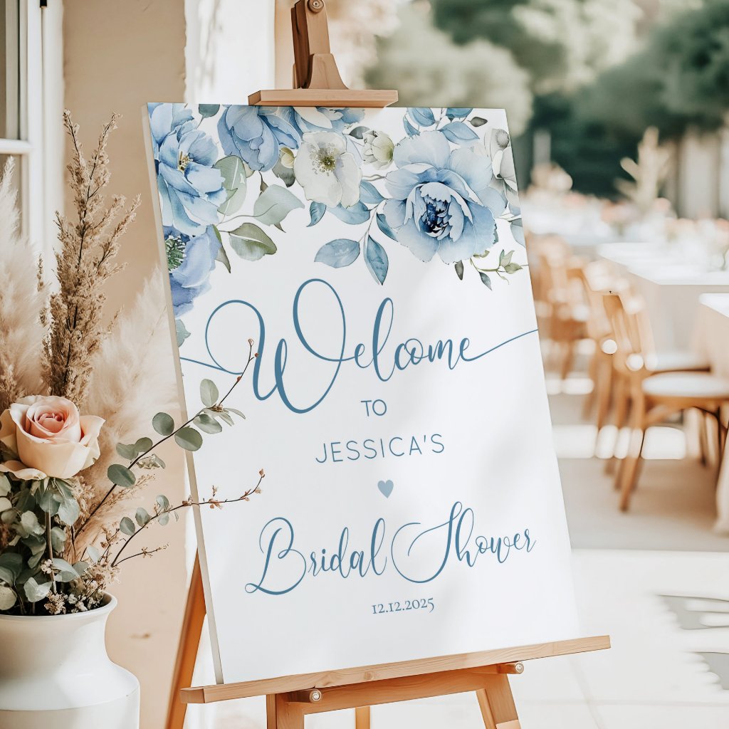Elegant Blue Floral Welcome to Bridal Shower Sign