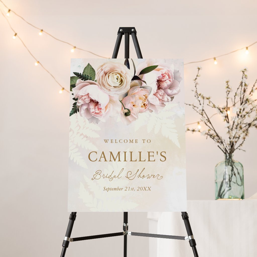 Blush and Gold Floral Welcome to Bridal Shower Sign