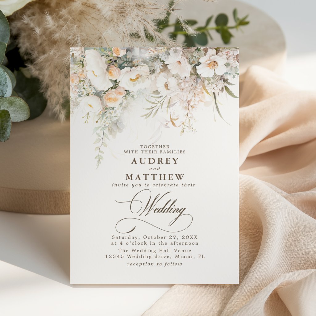 Elegant Rustic Boho White Floral Wedding Invitations